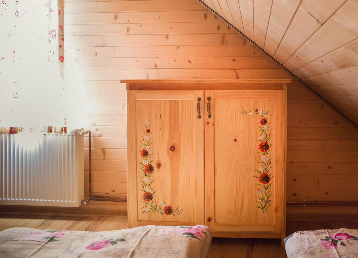 Domek z 2 sypialniami. Boasting a private entrance, this chalet comes with 1 living room, 2 separate bedrooms and 1 bathroom with a shower. Guests will find a stovetop, a refrigerator, kitchenware and a tea and coffee maker in the kitchen. The chalet also includes a barbecue. Featuring a terrace with garden views, this chalet also features a washing machine and a flat-screen TV with satellite channels. The unit has 7 beds. Powierzchnia pokoju ok.: 50 mkw. ;